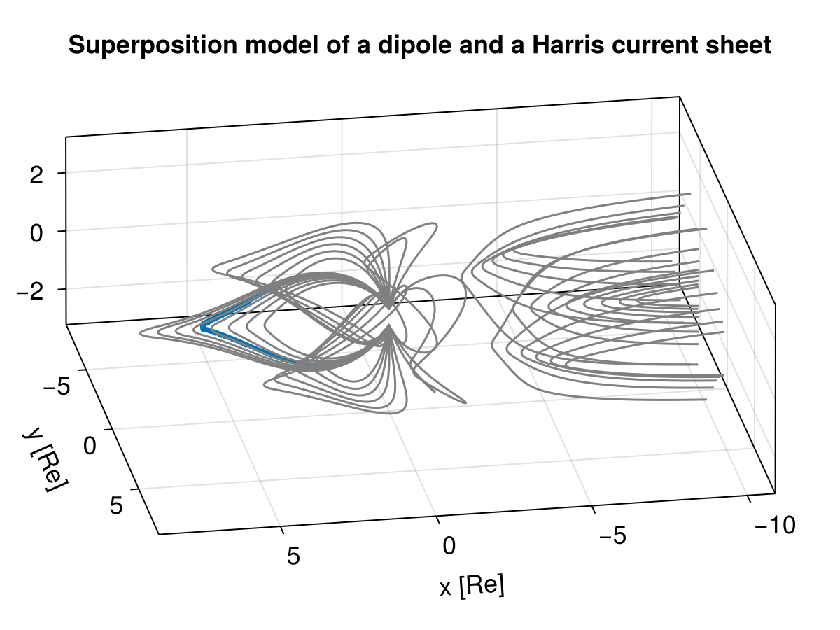 We now look at another superposition model of a dipole and a Harris current sheet.