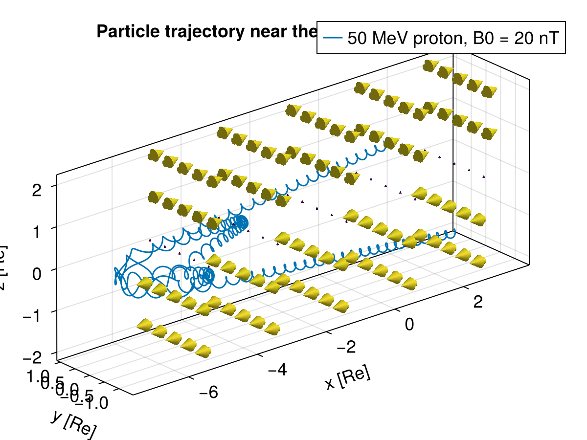 l = lines!(ax, x, y, z, label = "50 MeV proton, B0 = 20 nT")