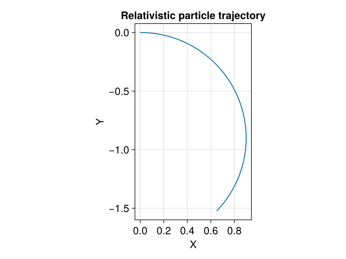 title = "Relativistic particle trajectory",