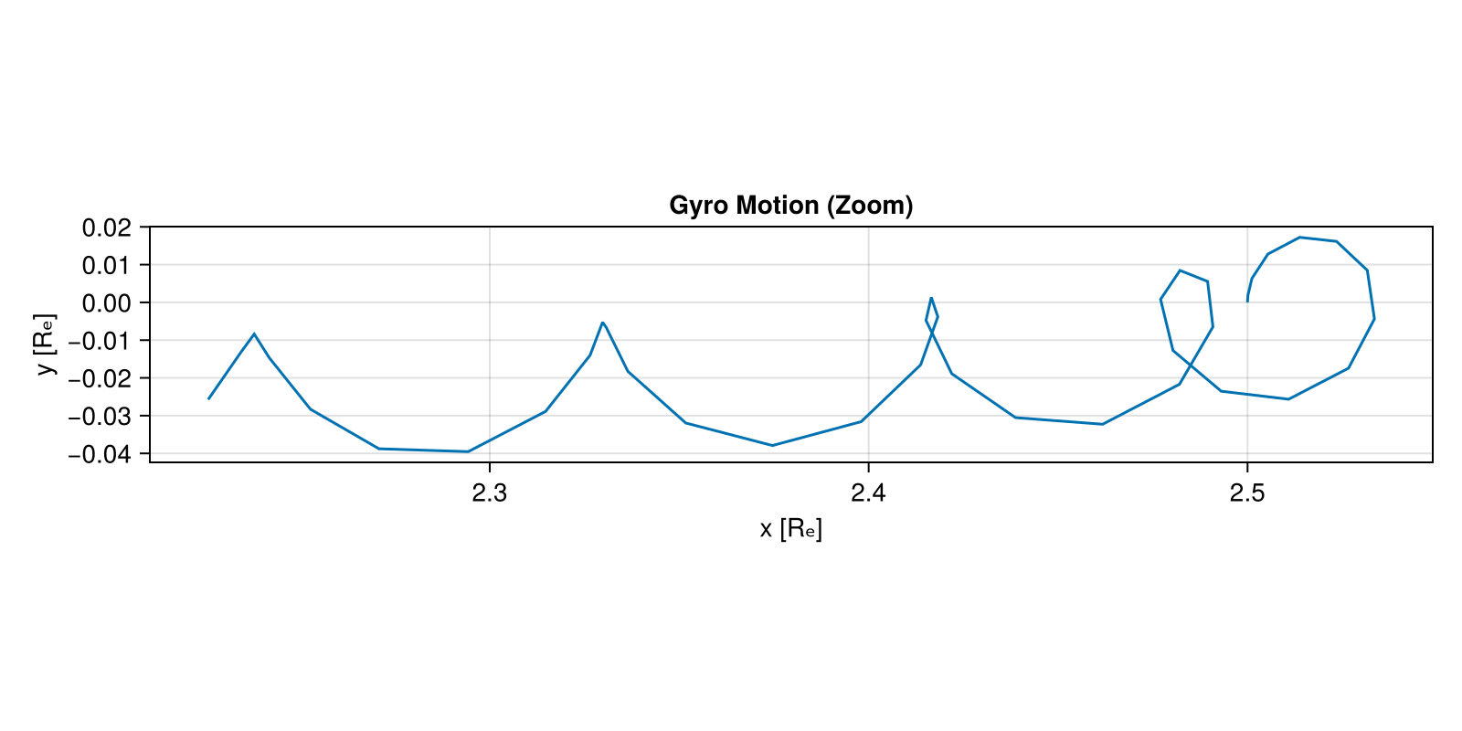 f1[1, 1], title = "Gyro Motion (Zoom)", xlabel = "x [Rₑ]",