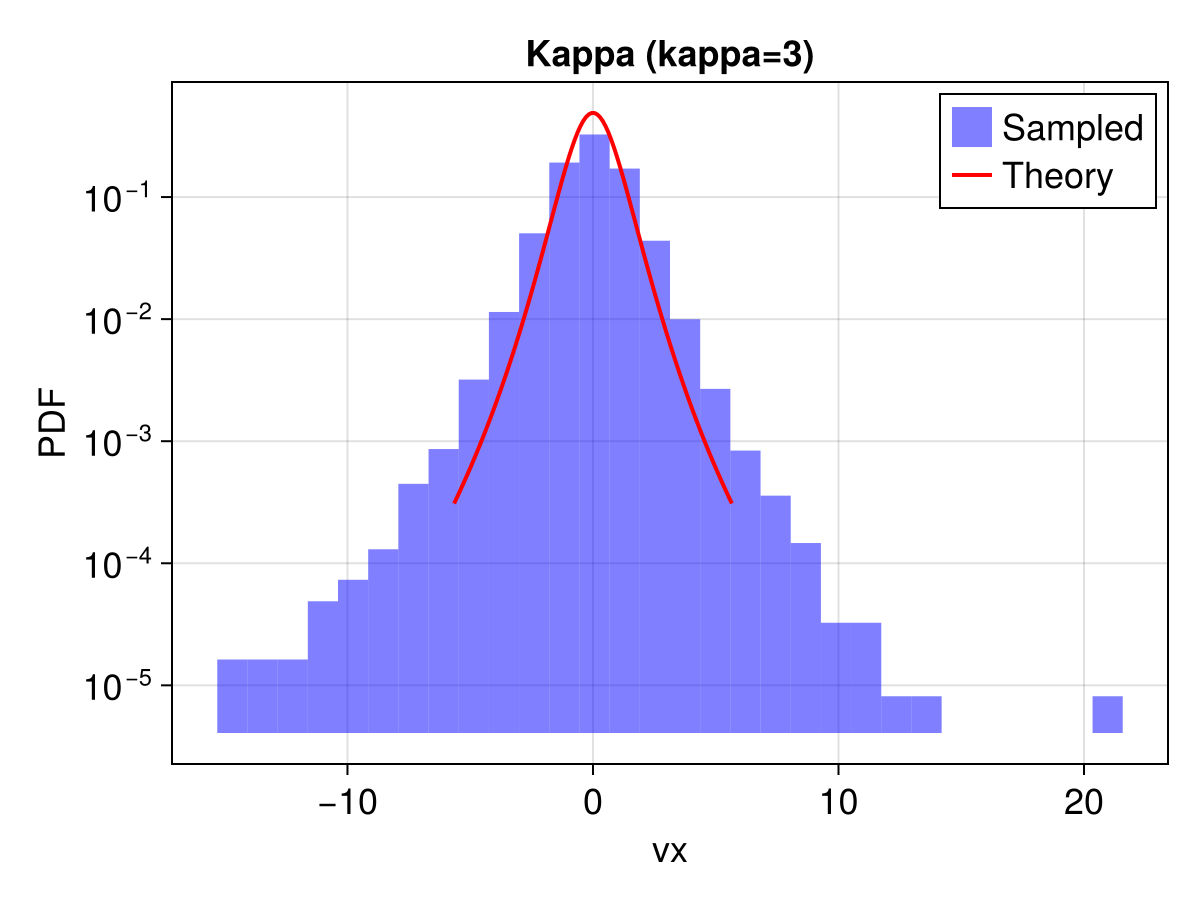 ax = Axis(f[1, 1], title = "Kappa (kappa=3)", xlabel = "vx", ylabel = "PDF", yscale = log10)